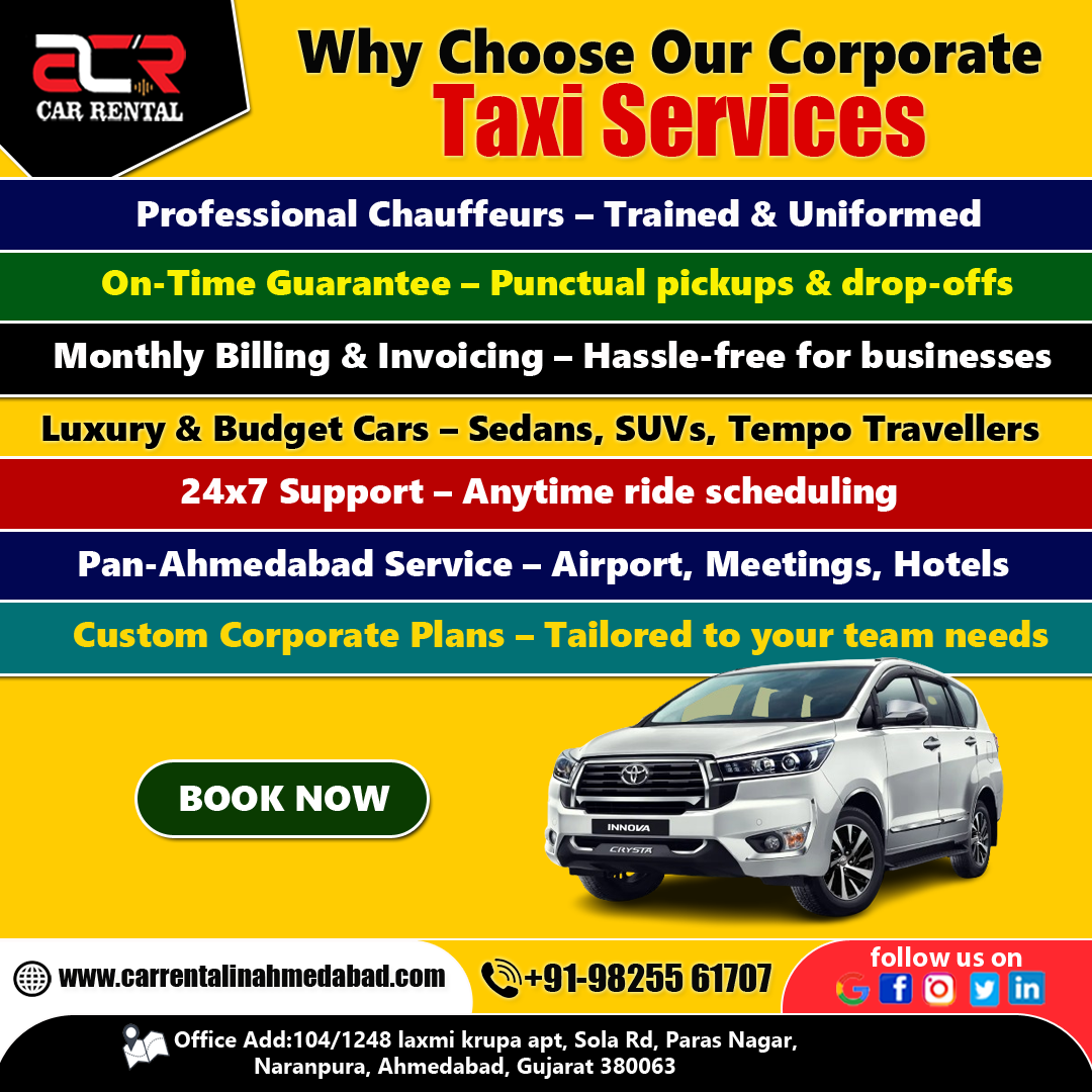 For reliable corporate cab hire in Ahmedabad, ACR Car Rental stands out as a trust Read More